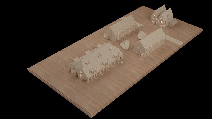 . Om de overgang naar het landschap te versterken, zijn de gevels aan deze zijde deels van hout gerealiseerd en krijgen de woningen veranda’s. De rijwoningen binnen het plan hebben een wat statiger karakter en zijn voorzien van een dakkapel die tevens de plek van de entree markeert.
