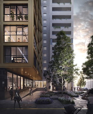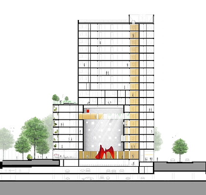 In de kern van het gebouw komt een atrium. “De zes verdiepingen hoge open ruimte is het bruisende hart en biedt ruimte voor een veelheid aan mogelijke functies, zoals exposities, omvangrijke kunstwerken en publieke evenementen voor de buurt. Voor zowel bewoners als bezoekers geeft dit een unieke ervaring”, stelt Dirk Peters, partner bij Barcode Architects.