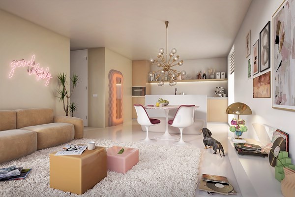 Het woonprogramma is gevarieerd en behelst onder meer compacte studio’s en ruime lofts. Naast dat de woningen afzonderlijk van buitenruimtes zijn voorzien, komen er collectieve buitenruimtes in de vorm van groene dakterrassen op elk van de drie lagere blokken. Het groen veraangenaamt bovendien de uitstraling van het gebouw en zorgt voor reductie van hittestress.