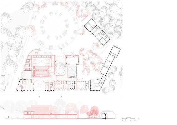 zijn via een Open Oproep geselecteerd voor het ontwerp van een nieuwe cultuurlocatie in Oudenaarde. Met een nieuwe theaterzaal en foyer, verbinding met bestaande gebouwen die nieuw leven krijgen ingeblazen en dubbel gebruik van de buitenruimte creëren de bureaus een plek voor podiumkunsten.