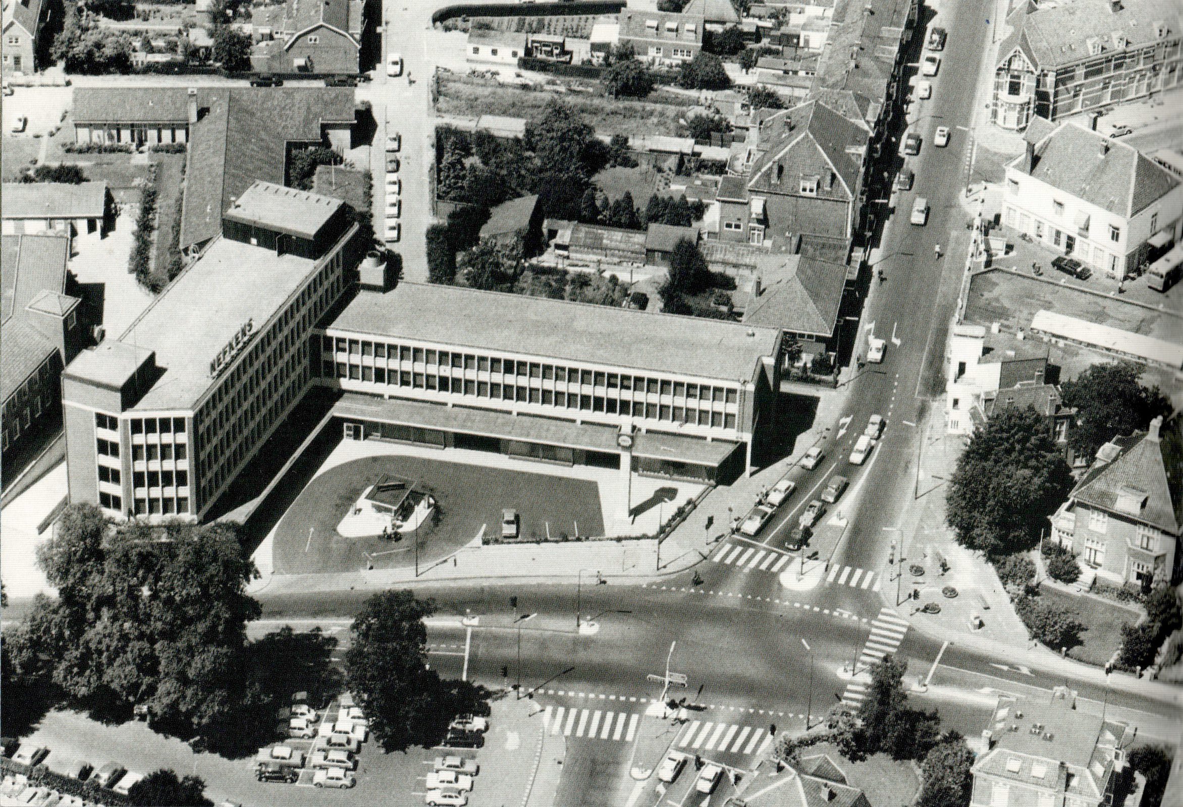 Het gebouw, met de kenmerkende rode neonletters op het dak, richt zich volledig op de automobilist die over de Utrechtseweg de binnenstad uit rijdt. Toen het gebouw twintig jaar geleden in handen kwam van ontwikkelaar en belegger