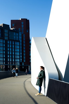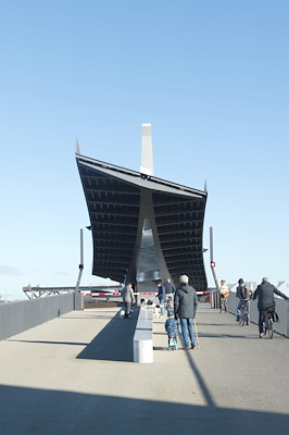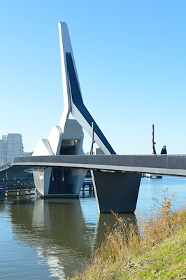 De brug is in totaal 141 meter lang en bestaat uit twee stalen aanbruggen en een beweegbaar deel (de val) van bijna 50 meter lang. De draagconstructie bevindt zich in het midden van het brugdek, waardoor het bouwwerk ondanks de forse overspanning slank oogt. De hoofdligger is deels boven het brugdek gehouden, wat meteen een scheiding tussen het voetgangers- en fietsersdeel creëert.