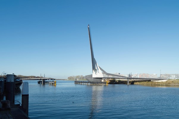 Een beweegbare fiets- en voetgangersbrug tussen de woonwijk Stadswerven en de binnenstad van Dordrecht is onlangs officieel geopend. De sculpturale en technisch bijzondere Prins Clausbrug is ontworpen door