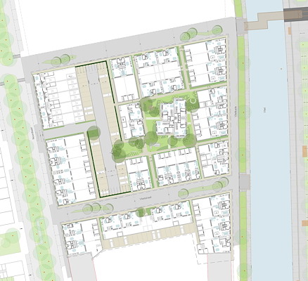 Daarnaast wordt ingezet op een groene en ‘doorwaadbare’ omgeving, waarin op getrapte wijze een overgang van stad naar buurt naar hof en uiteindelijk woning ontstaat. Zo ontstaat een fijnmazig weefsel van straten en steegjes met verrassende doorzichten, aldus de beide bureaus.