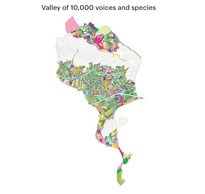 In de visie van MVRDV wordt op elke kavel iets anders verbouwd. Dit moet de biodiversiteit stimuleren en het landschap visueel aantrekkelijker maken. “De vallei kun je vergelijken met een serie testvelden voor de 10.000 soorten die daar straks zullen bloeien. Een duurzame Tuin van Eden”, zegt Winy Maas van MVRDV. Binnen bestaande structuren worden voorts extra wandel- en fietspaden gecreëerd.