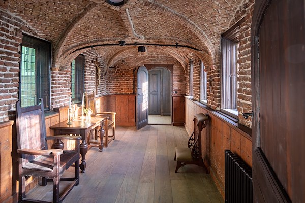 . In de herstelde gangstructuur zijn moderne eiken glaspuien toegevoegd