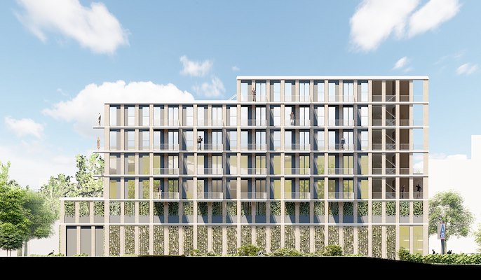 Groen woongebouw van LEVS voor lege plek in Bijlmermeer