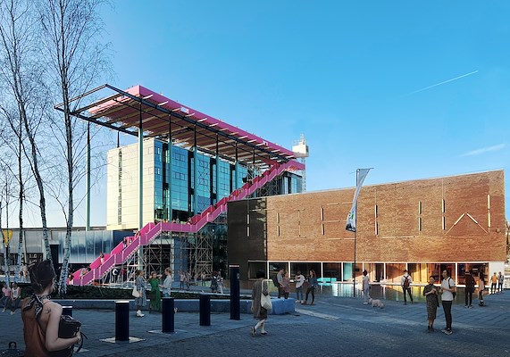 Symbiose van Van Eycks monument en MVRDV’s landscraper wordt zichtbaar