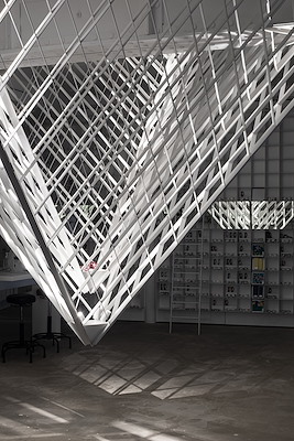 het interieur ontworpen. Het centrale en meest in het oog springende element is een op zijn kop gezette piramide. Dit symboliseert volgens het bureau de manier waarop Polette de markt voor opticiens 'op zijn kop heeft gezet' en de piramide is tevens een herkenbaar symbool voor mensen met verschillende culturele achtergronden.