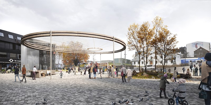 De belangrijkste architecturale ingreep op het centrale plein wordt ‘The Halo’. Dit is een ringconstructie met een robuust gordijn dat tegen de wind beschermt, die tegelijkertijd aardwarmte oogst en zo een aangename openbare ruimte creëert.