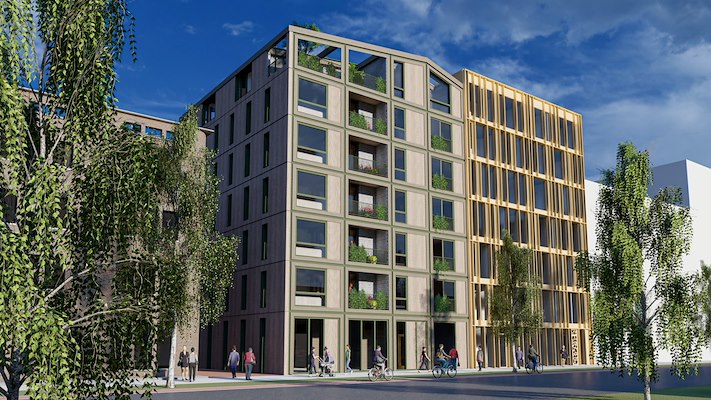 Groot woongebouw in Alkmaar uit houten prefab modules