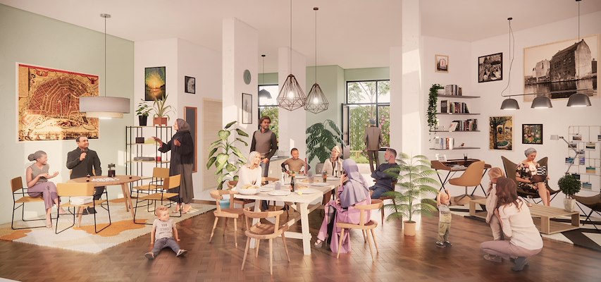 Dat gebeurt door het gebouw van een overkraging te voorzien, waaronder de bewoners tevens een beschutte plek vinden waar ze elkaar kunnen ontmoeten. In het gebouw zelf worden 29 eenkamer- en negen tweekamerappartementen gerealiseerd, daarnaast komt er een gemeenschappelijk ruimte waarvan de bewoners zelf in invulling mogen bepalen.
