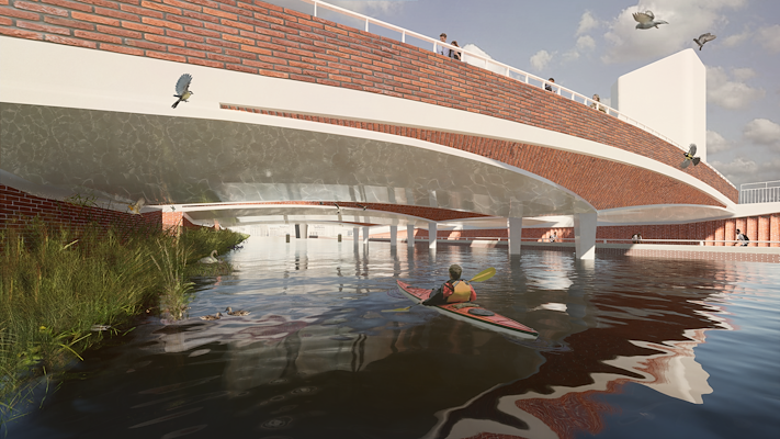 StudioSK presenteert voorlopig ontwerp bruggen over doorgetrokken Leidse Rijn