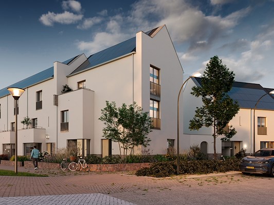 Duurzaamheid zit in dit project niet alleen in de zonnepanelen bij oplevering, maar ook met het onderhoud op lange termijn, als het aan Bedaux de Brouwer ligt. “Dat dit werkt zien we in het Witte Dorp in Eindhoven, dat 90 jaar later nog steeds een mooie en gewilde wijk is.”