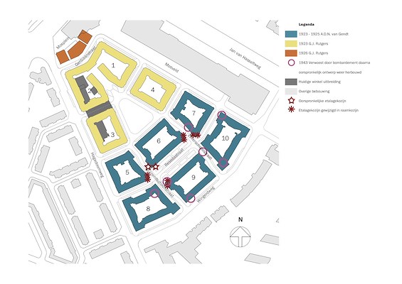 In het oorspronkelijke plan lagen acht winkels rondom de Resedastraat, maar na latere verplaatsing van winkels naar de Hagedoornweg veranderden zes van de acht winkelpanden naar woonhuizen. Een van de tot hoekwoning omgevormde winkels beschikte nog over de originele etalageruiten. Ibelings van Tilburg Architecten heeft deze hoek tot in detail teruggebracht naar het origineel, inclusief de bovenlichten met de voor dit blok kenmerkende diagonale roedeverdeling.