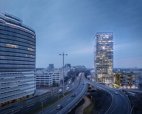 Bij een internationale architectuurcompetitie voor hoogbouw met gemengd programma in Düsseldorf is het ontwerp van UNStudio en OKRA landschapsarchitecten geselecteerd. Het circa 90 meter hoge gebouw vormt een belangrijk onderdeel van het masterplan voor de stedenbouwkundige ontwikkeling Belsenpark op de linkeroever van de Rijn.