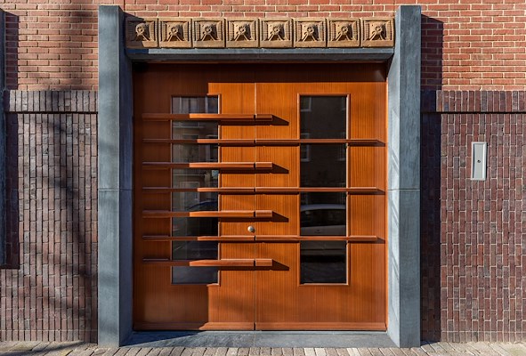 De rationeel opgezette gevel kent een sterke repetitie van raamopeningen. De bovenste twee verdiepingen hebben een dubbel ritme van gemetselde ribben, die in het perspectief van de straat de kozijnen van de bovenste verdieping uit het zicht nemen. Op die manier ontstaat volgens KENK een gesloten, maar uitbundig gemodelleerde driedimensionale kroon, kenmerkend voor veel stedelijke wanden uit de periode van de Amsterdamse School. Het gebouw heeft een monumentale entree van hout en natuursteen.