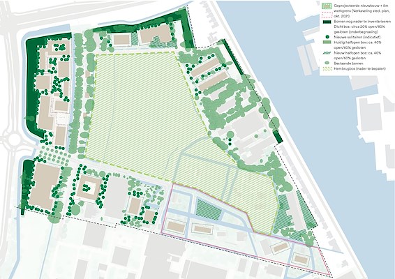 In het noordelijk deel wordt het bos doorontwikkeld. Er worden 1.400 nieuwe bomen geplant in het gebied, meer bomen dan het aantal bomen dat zal worden gekapt om ruimte te maken voor nieuwe constructies. Verder zal het historische bos worden behouden en daarom zal nieuwbouw worden ontwikkeld aan de randen van het bos. Het bos vervult in de toekomst een belangrijke rol als openbaar buitengebied voor bewoners en bezoekers.