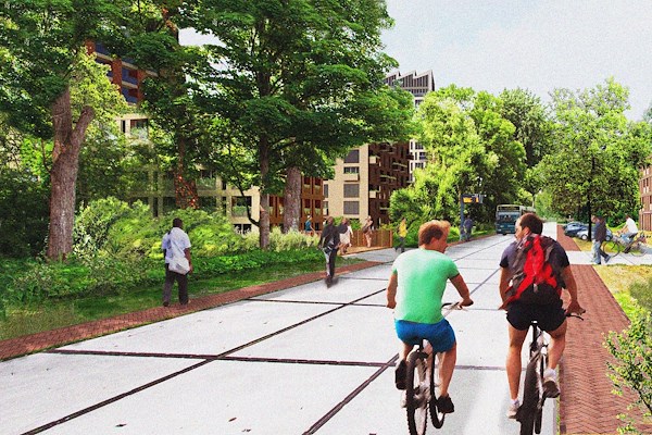 Daarom zal het merendeel van de nieuwbouw en het parkeren nabij de hoofdentree worden geconcentreerd. Ook wordt er een hoogwaardig en fijnmazig netwerkstructuur aangelegd voor voetgangers en fietsers, waarbij de loop- en fietsroutes aan zullen sluiten op OV-haltes, mobiliteitshubs en buurtvoorzieningen.