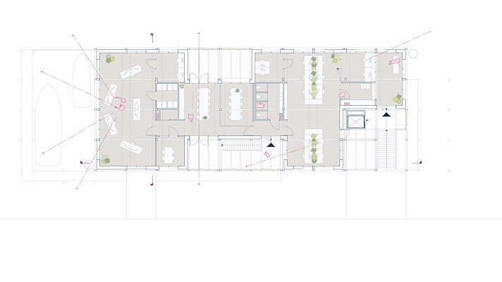 Binnen deze structuur hebben alle functies een plek gekregen en op beide verdiepingen is extra ruimte geschapen die nader en flexibel kan worden ingevuld; de ‘ruimte voor de verbeelding’, zoals VLOT architecten het noemt.