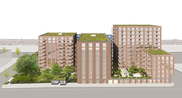 ontworpen project bestaat uit drie volumes met in totaal 264 woningen en een aantal commerciële voorzieningen in de plint. Het plan wordt naar ontwerp van