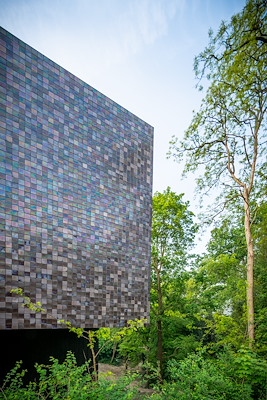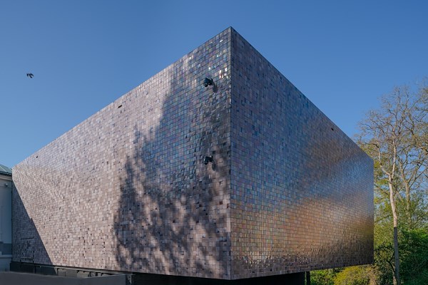 “De buitenkant moest subtiel én verrassend zijn, zodat het gebouw onderdeel wordt van de omgeving en tegelijk nieuwsgierigheid opwekt”, zegt architect en partner Joost Vos van Benthem Crouwel. “De gevel wordt eigenlijk steeds interessanter wanneer je dichterbij komt. Alle tegels zijn uniek, alsof het allemaal kleine kunstwerkjes zijn, heel passend bij deze bijzondere plek en de functie als museum.”