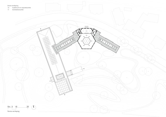 De nieuwbouw bestaat uit vijf tentoonstellingszalen en twee publieksruimtes die onderling zijn verbonden via een volgens Benthem Crouwel ‘vanzelfsprekende routing’. “De nieuwe tentoonstellingsruimten staan in dienst van de collectie en de wisselende exposities. Deze rustige zalen met ononderbroken wanden worden afgewisseld met ruimtes die juist open zijn en door middel van grote, doorlopende raampartijen een vrije blik bieden op de natuur en de stad, waardoor de unieke ligging van het museum optimaal benut en benadrukt wordt”, meldt het bureau.