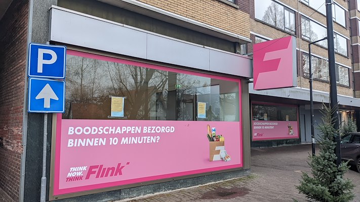 Bij flitsbezorgers kunnen mensen kleine boodschappen bestellen die vervolgens razendsnel, bijvoorbeeld binnen 10 minuten, worden afgeleverd. Om dat te kunnen doen, zitten de distributiepunten midden in woonwijken. In die ‘winkels’ is verder niets te doen, de ramen zijn afgeplakt en consumenten kunnen niet naar binnen.