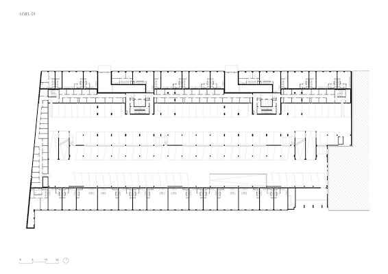 De zichtbare dubbele hoogte van penthouses en maisonnettes bovenaan de torens complementeren het ritme van de gevel. Door maisonnettes langs de randen van de torens te plaatsen, kunnen de technische installaties direct boven de liftkernen worden verborgen en wordt voorkomen dat ze boven de dakrand uitsteken, verklaart het bureau.
