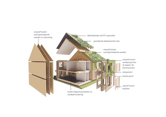 hebben een biobased en energiepositieve rijwoning ontwikkeld. ONS Natuurhuis, zoals het ontwerp heet, is de winnaar van een competitie waarmee Ballast Nedam Development zocht naar een ‘schaalbare klimaatpositieve rijwoning’.