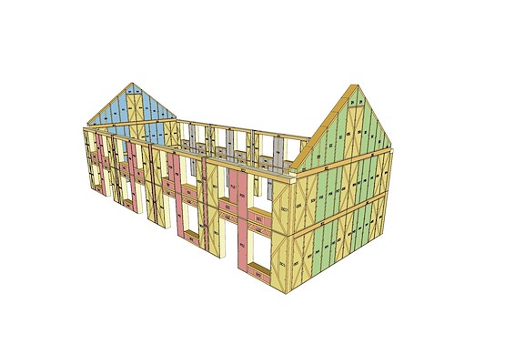 De prefab elementen met geperst stro