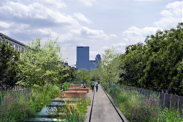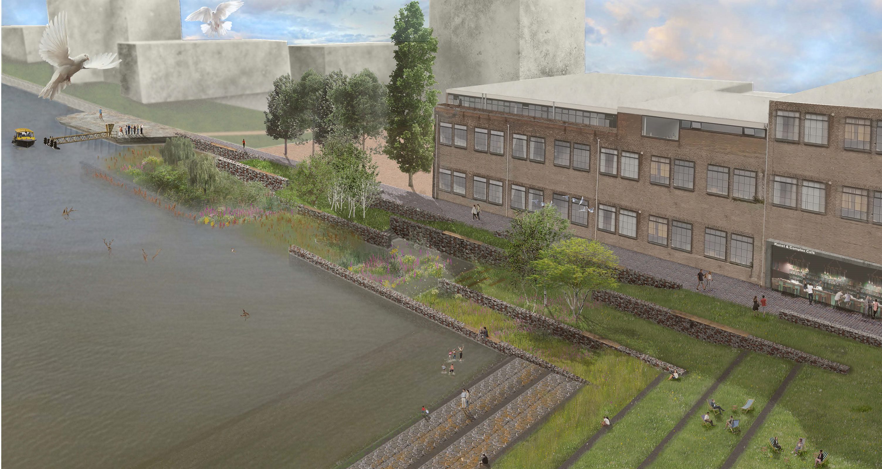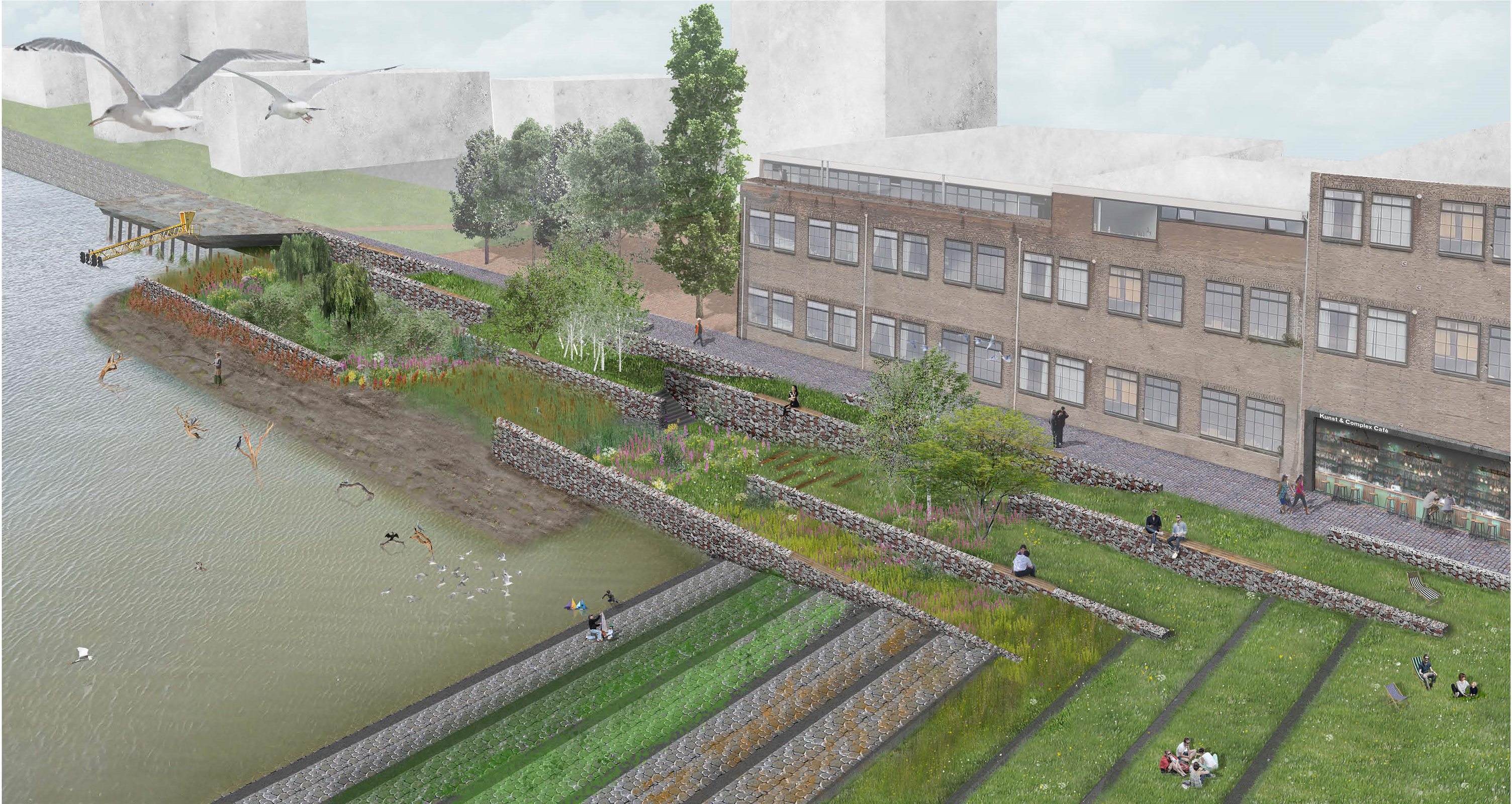 astructuur maar als een natuurlijk systeem, waarin het getij weer zichtbaar en beleefbaar wordt. Middels getijdeparken kun je de dynamiek van het estuarium en de overgangen van nat naar droog en van laag naar hoog een plek geven in het stedelijk landschap. Het getijdepark dat we op dit moment realiseren in de Keilehaven in Merwe-Vierhavens (M4H) is een showcase voor deze nieuwe parktypologie. Het zou fantastisch zijn als we ook getijdeparken kunnen maken in de rest van M4H, in de Sint Jobshaven, de Schiehaven en op termijn de Waalhaven.”