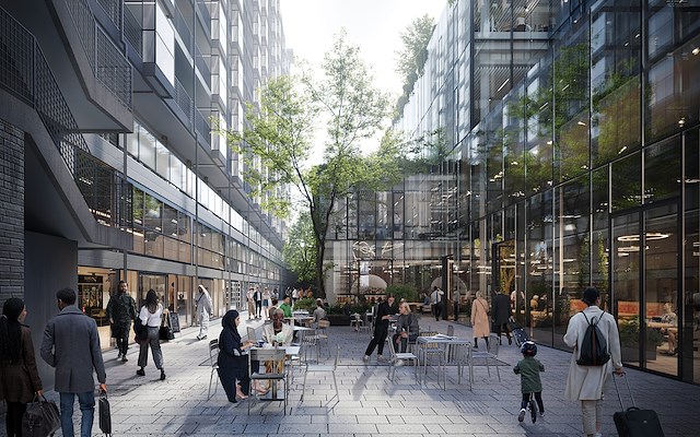 Het complex loopt aan de achterzijde door over de Lijnbaanhof tot aan de Karel Doormanstraat. Dit deel biedt plek aan winkels en horeca, met ertussen buitenruimte waar bezoekers kunnen wandelen en op een terras zitten. Op het maaiveld en de daken van de bebouwing wordt groen gerealiseerd volgens een plan van LOLA Landscape Architects.