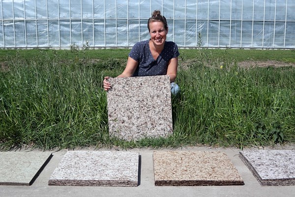Het plaatmateriaal kan bijvoorbeeld worden toegepast binnen de interieur- en meubelbouw als biolaminaat en voor productontwerp. Zo wordt BioM al gebruikt als afwerking voor wanden, kasten en tafelbladen. Momenteel produceert VanHier platen van 60 x 60 cm. Voor grote projecten en commerciële afname zullen we nog even geduld moeten hebben, zegt Postma: de onderneming werkt momenteel aan de automatisering van de productie.