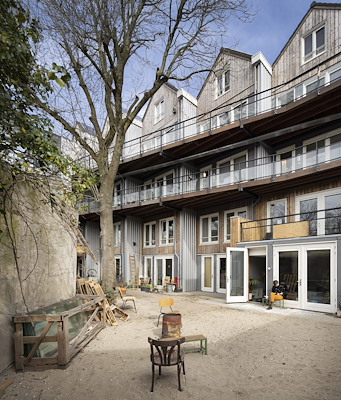 , een project dat coöperatief opdrachtgeverschap combineert met duurzame architectuur op basis van recycling. Woonstad Rotterdam en Beheercoöperatie W1555 waren samen opdrachtgever van deze transformatie naar ontwerp van Superuse Studios. De uitvoering lag in handenvan BIK bouw. “Hergebruik is altijd beter dan sloop-nieuwbouw, collectief hergebruik is nog beter”, schrijft het publiek.