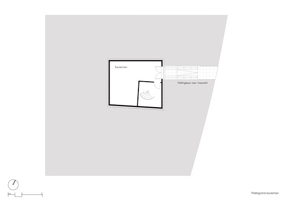 De begane grond is aan de voorzijde verhoogd ten opzichte van de straat en loopt af naar de tuinzijde, dit minimaliseert eventuele inkijk van buitenaf. Ook is de lamellengevel van de bovenbouw op strategische plekken voor de ramen langs doorgetrokken, waardoor er met optimale lichtinval toch privacy wordt geboden.