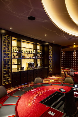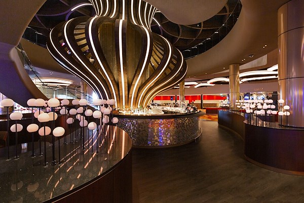 Rondom de bloemstengel slingert de centrale bar, zich uitstrekkend over verschillende niveaus van het gebouw. Rondom de bar zijn de tafelspelen en de roulettetafels gesitueerd. Als bladeren van een bloem liggen hier omheen de andere functies van het casino.