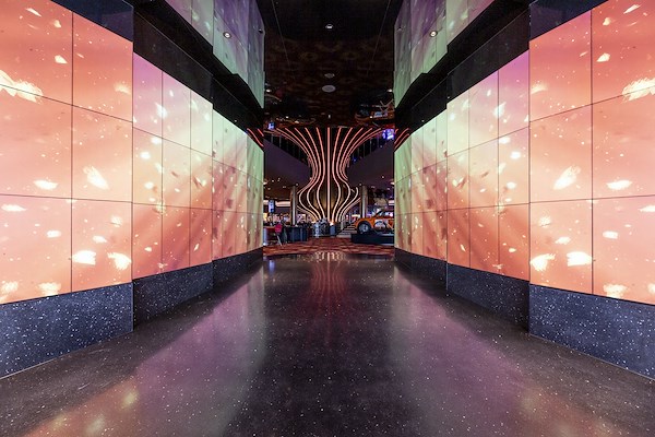 wordt geflankeerd door zogenoemde ‘digital portals’, die met kleurige beelden de bezoekers in de juiste stemming moeten brengen. De beelden zijn afgestemd op de kleuren van de gebouwgevel.