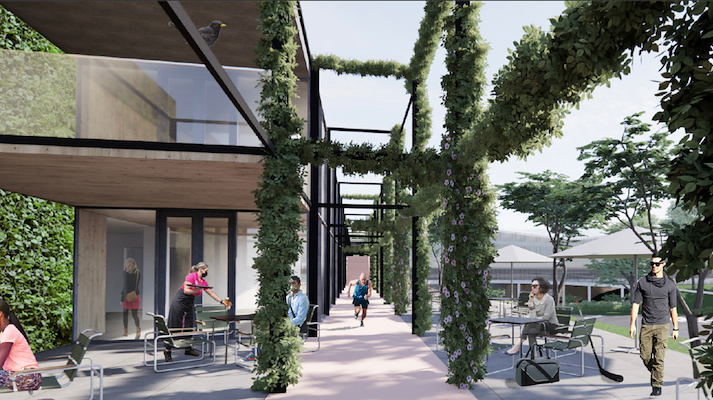 Alle sportverenigingen die een plek krijgen binnen het gebouwenensemble hebben straks eigen ‘lounges’ met veel groen, die rond de centraal gelegen horeca gegroepeerd zullen zijn. Het pad met pergola’s dat de gebouwen en het park koppelt, krijgt niet alleen een groen karakter, maar zal ook de geschiedenis van het sportpark weerspiegelen. In een speciale Walk of Fame komen verwijzingen naar onder meer het legendarische optreden dat The Police in 1979 gaf op Pinkpop.