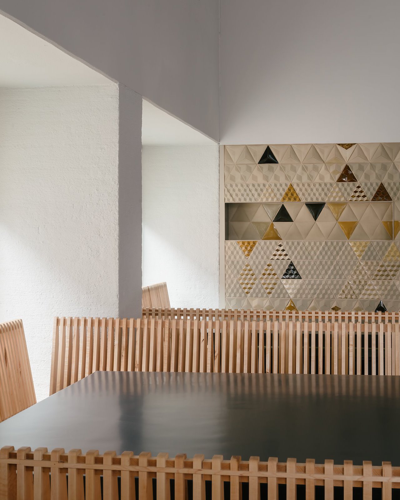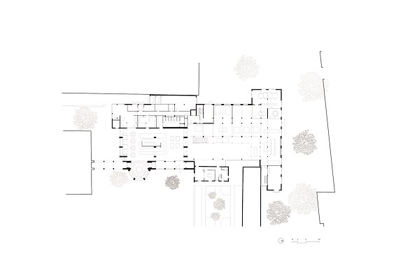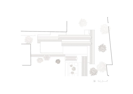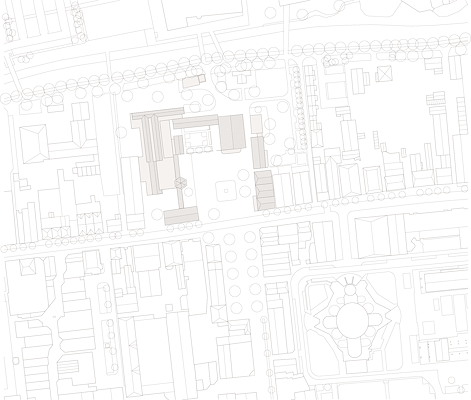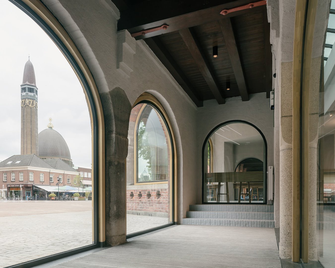 De bogen van de muziekkiosk en arcade zijn voorzien van glas; de voormalige kiosk maakt deel uit van het café en de arcade fungeert, met een royale taatsdeur en twee grote schuifdeuren, als tochtportaal. In het verlengde van het café ligt een binnenplein, dat Civic heeft gecreëerd door een volume te realiseren op de plek van een verwaarloosde binnentuin. De tuin lag tussen een oud bouwdeel van Krophollers ensemble en een nieuwbouwdeel uit de jaren 80: nu bevindt zich hier een ruimtelijk entreegebied, dat zorgt voor daglicht en overzicht. Een ‘tapijt’ van bestrating in visgraatmotief geeft deze tuinzaal de sfeer van een overdekt stadspleintje. Samen met het lichte, heldere museumcafé ontvangt de tuinzaal de bezoeker in een aangename openheid, die – mede door het materiaalgebruik – ook warm en intiem aanvoelt.