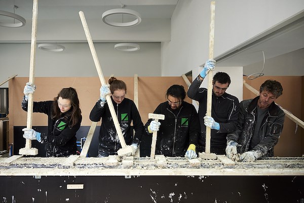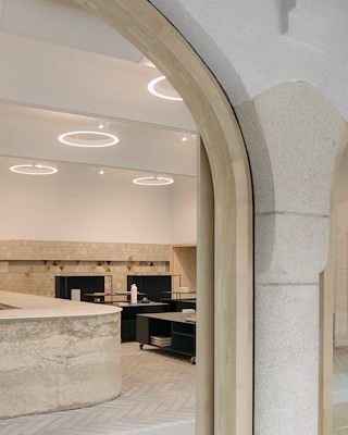De ruimte ontsluit de winkel, het museumcafé en de labs, en aan de andere zijde de tentoonstellingsruimten, die door grote openingen in de muren al een glimp laten zien. Het binnenplein is multifunctioneel bruikbaar en kan ook dienen voor bijvoorbeeld presentaties en modeshows; met het oog daarop is rond de ruimte een galerij gecreëerd.