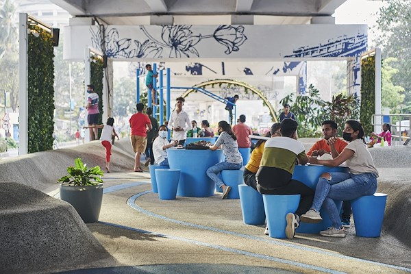 Toen in de omgeving kantoren werden ontwikkeld, kreeg StudioPOD de opdracht van Nucleus Office Parks om een achthonderd meter lang stuk van de straat langs de flyover te verbeteren. Voor de meest ingrijpende verbetering, de ruimte onder het viaduct, werd MVRDV gevraagd.