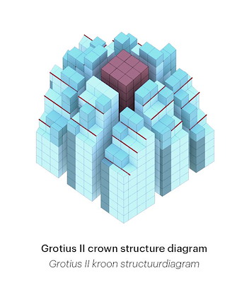 ontworpen Grotiustorens opgeleverd. De 100 en 120 meter hoge torens bieden ruimte aan in totaal 655 appartementen, waarvan een groot deels in het midden- sociale segment valt. De kronen van beide gebouwen zijn ontworpen als een gestapeld ‘landschap’ van woningen en terrassen.