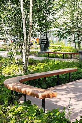 De bomen zijn grotendeels inheemse soorten, zoals moseiken, haagbeuken en lijsterbessen. Ze zijn in diverse vormen en formaten aangeplant. De kruidlaag heeft vooral een natuurlijke uitstraling, waarbij de plantensoorten zijn geselecteerd zijn op bladstructuur. Hierdoor ontstaat een rijk palet aan verschillende vaste planten, die voor een mooie combinatie van groen en bladstructuren zorgen.