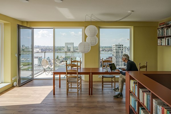 Verder bieden Het Dok, de omringende woonblokken en de NDSM-werf veel (semi-)publieke functies. “Hierdoor overstijgt het begrip ‘ruimte’ als het ware het eigen woonblok”, legt de Architekten Cie. uit. “Het Dok is daarom de uitgelezen plek voor compacte woningen.”