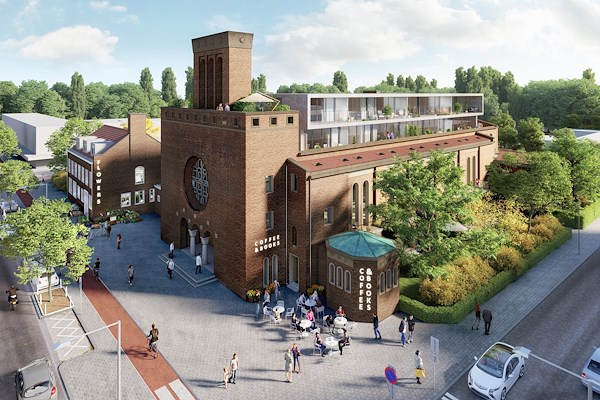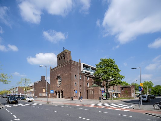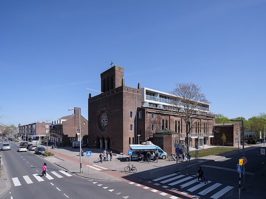 is het uit 1953 stammende kerkgebouw in Overschie getransformeerd voor diens nieuwe bestemming, die naast woningen een café en een winkel behelst. De oorspronkelijke structuur van de kerk diende als basis voor de nieuwe functie.