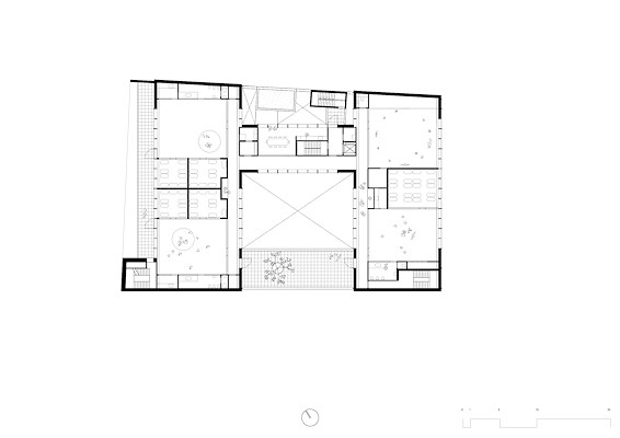 De centrale Patio van de Krachtpatsers brengt niet alleen daglicht in het hart van het project, maar verbindt ook de verschillende ruimten. De buitenruimte maakt het tevens mogelijk om ā bijvoorbeeld tijdens evenementen ā de bezoekerscapaciteit te vergroten.