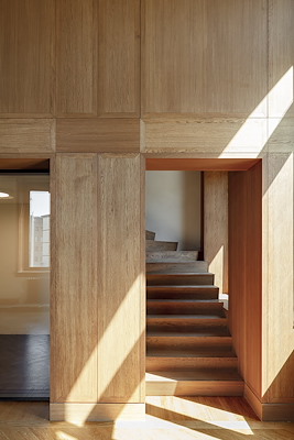 Daar waar de uitbreiding de solide massa van het originele gebouw doorsnijdt, heeft het architectenbureau subtiele marmeren vlakken toegevoegd. Dit is gedaan als spiegeling van de elegante materialisatie van het 19