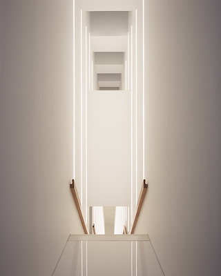 Een rechte, verrassend lange trap verbindt de nieuwe expositiezalen op de eerste verdieping met die op de bovenste verdieping. Een tussenverdieping huisvest de kwetsbaarste kunst, zoals etsen, tekeningen en schetsen. Deze ‘donkere kamers’ zijn uitgevoerd in een intens blauwe kleur. Het palet van het nieuwe museum is een helderder variant op de kleuren van het originele museum.
