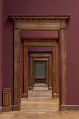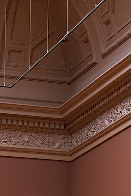 Het historische museum biedt een enfilade van expositiezalen in donkerroze, olijfgroen en rood; eiken deuren, hoge pilasters en gipsen plafondornamenten dragen bij aan het gevoel van klassieke grandeur en het kleurenpalet refereert aan de originele kleuren van het museum.